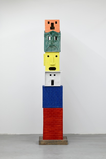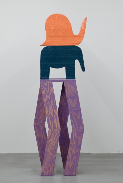 Koen Taselaar, A Snail And An Elephant, 2023, glazed stoneware, hard-wax oil on wood, 165 x 56 x 30 cm
